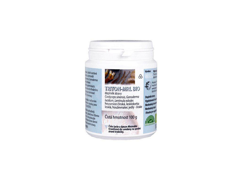 Triton MRL BIO představuje vyváženou kombinací tří hub ve stejném poměru: housenice čínské (Cordyceps sinensis, tochukaso, dongchongxiacao), lesklokorky lesklé (Ganoderma lucidum, reishi, lingzhi) a houževnatce jedlého (Lentinula edodes, shiitake - šitake, xianggu). Takové složení respektuje moderní vědecké poznatky o účinných látkách, kdy složený účinek nastává použitím zástupců různých řádů říše hub.